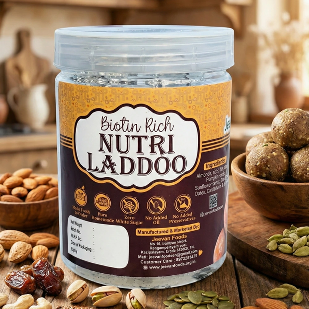 Nutrition Meets Tradition: Each Biotin Rich Nutri Laddoo is a perfect blend of ancient nutritional wisdom and modern health insights. Our commitment is to provide you with a delicious, nutrient-rich treat that supports your body’s natural vitality.